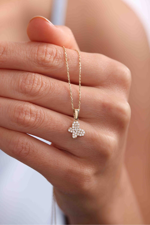 14 Ayar Altın Tam Taşlı Kelebek Slope Kolye Ucu